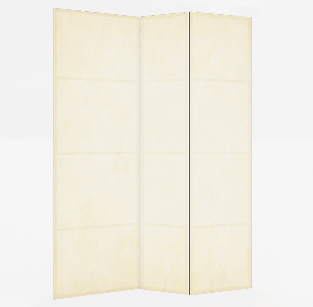 Screen formed by three modules made out of an iron structure and covered by parchment