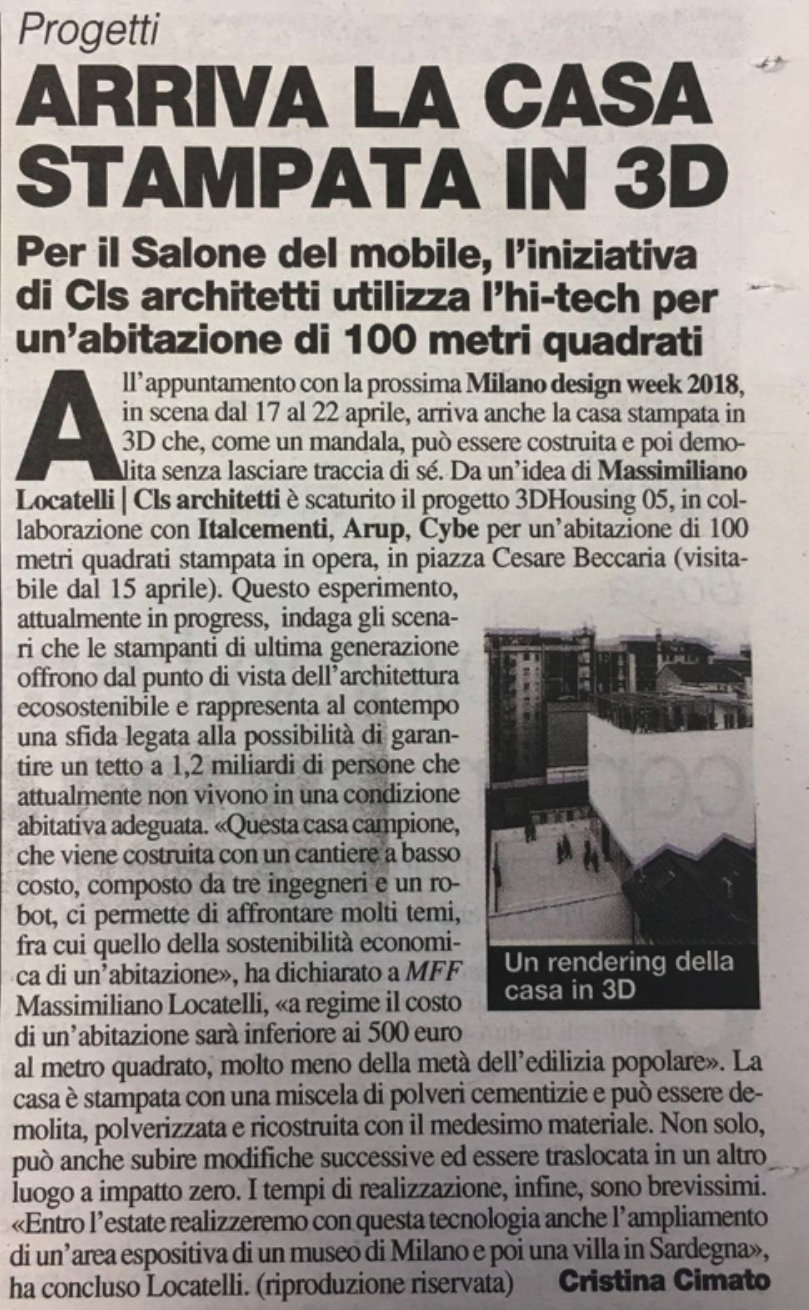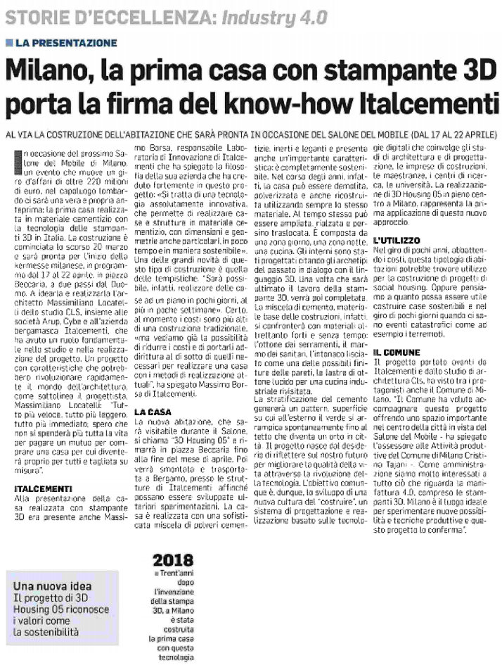 < Il Sole 24 Ore/Casa Plus 22 Marzo 2018