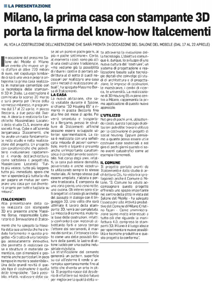 < Corriere dela Sera ed. Brescia 27 Marzo 2018