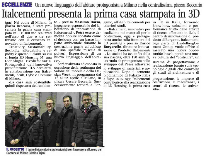 < Corriere dela Sera ed. Bergamo 27 Marzo 2018
